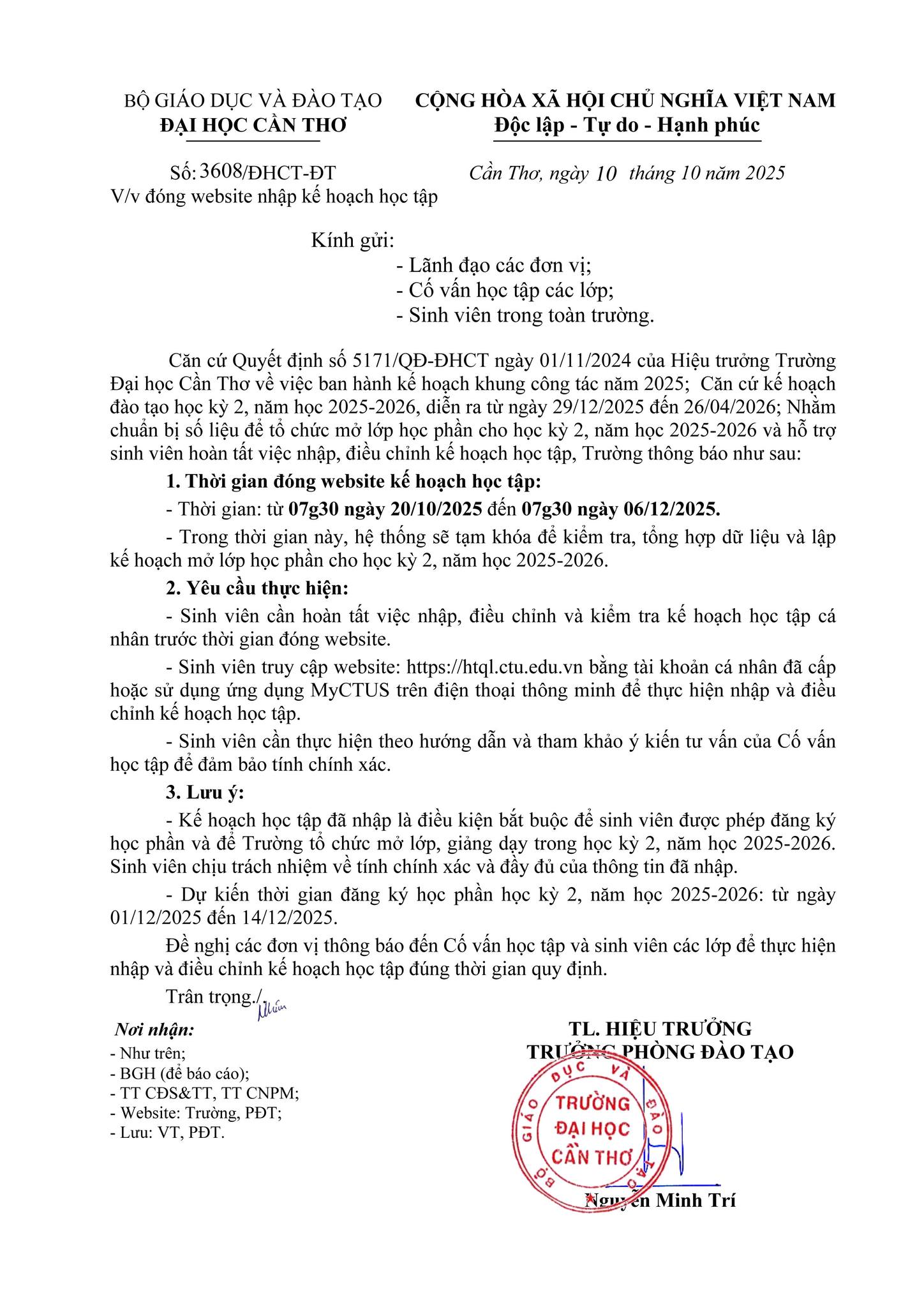 Thông báo về việc đóng website nhập kế hoạch học tập từ 20/10/2025 đến 06/12/2025Được đăng: Thứ sáu, 17 Tháng 10 2025 02:47 Trang sau
