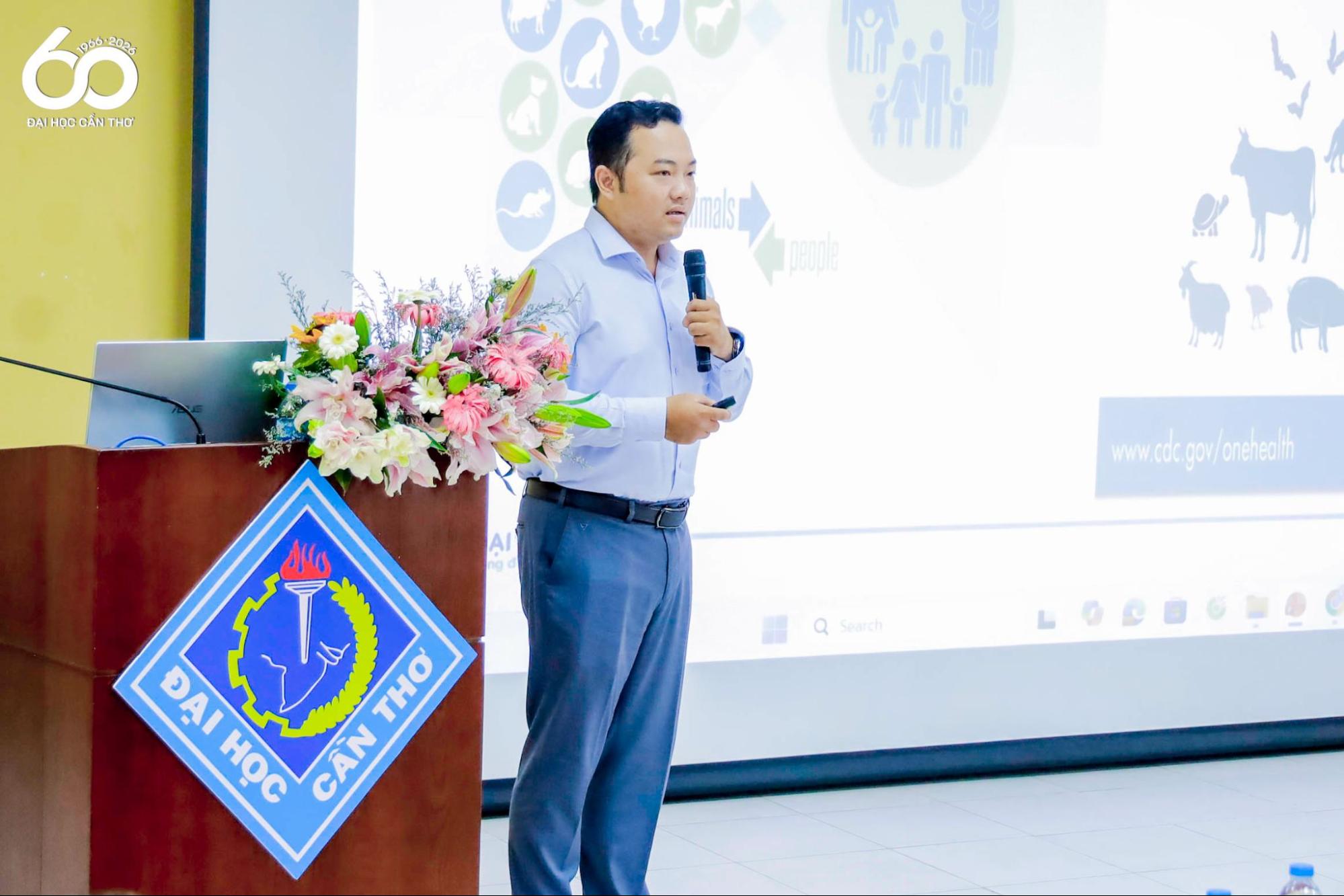 PGS.TS. Nguyễn Khánh Thuận - Khoa Thú y, Trường Nông nghiệp - ĐHCT trình bày một số nghiên cứu bệnh truyền lây giữa động vật và người hiện nay tại Đồng bằng sông Cửu Long