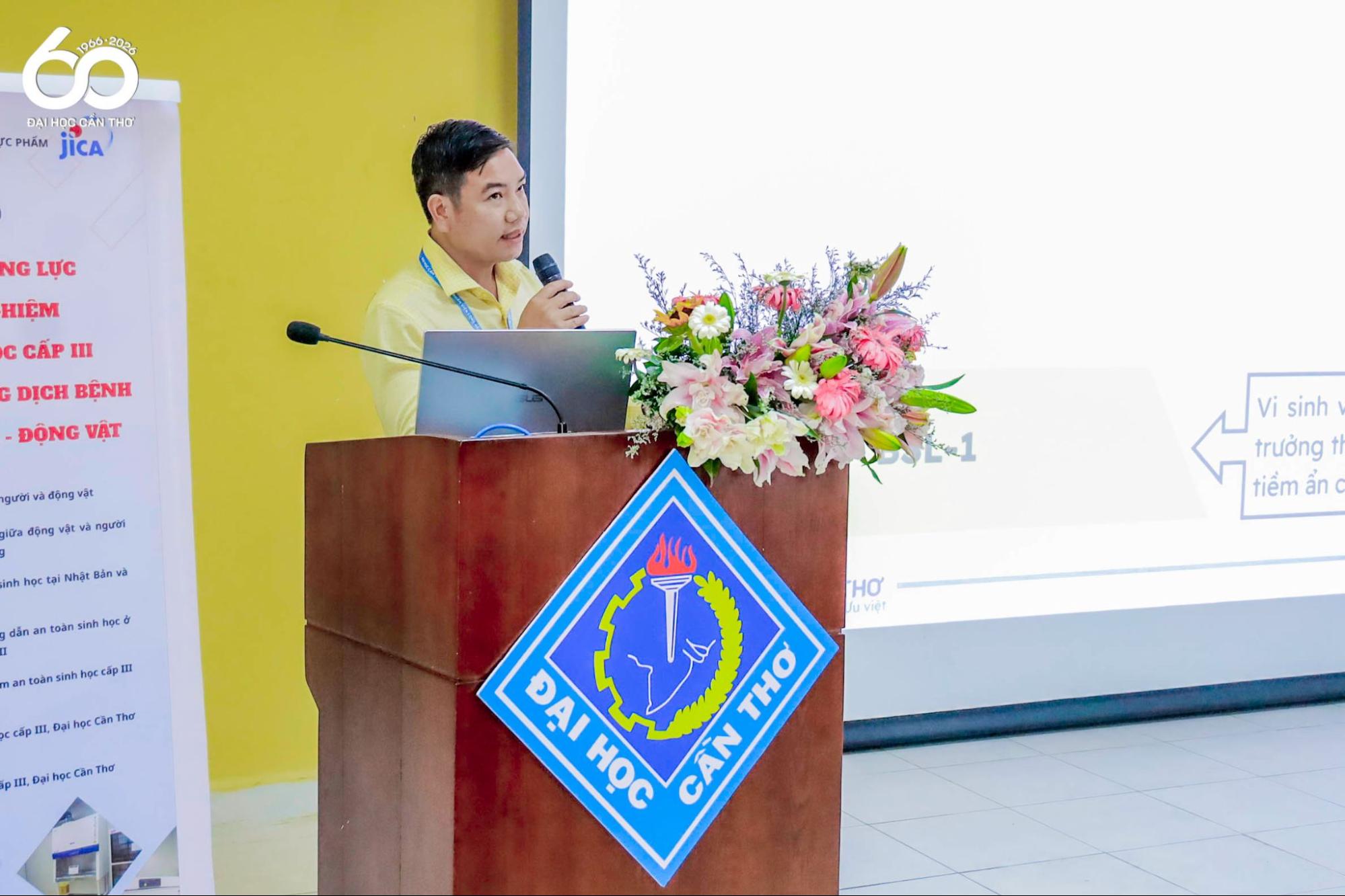 Sáng ngày 10/3/2026, Đại học Cần Thơ (ĐHCT) phối hợp với Văn phòng Cơ quan Hợp tác Quốc tế Nhật Bản (JICA) Việt Nam tổ chức Hội thảo “Tăng cường năng lực Phòng thí nghiệm An toàn sinh học Cấp III trong phòng chống dịch bệnh lây truyền Người – động vật”. Chương trình được tổ chức với mục tiêu chia sẻ kinh nghiệm trong nước và quốc tế; cập nhật kiến thức chuyên môn; thảo luận các giải pháp nâng cao năng lực nghiên cứu; giám sát, phòng chống dịch bệnh lây truyền giữa người và động vật.